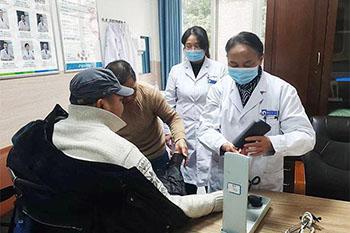 来到医院后,我院的工作人员热情接待了梅先生,并详细询问其身体状况和生活情况,同时为其进行了量血压、听心率等健康检查。临走时,还给梅先生回赠了米、油、牛奶等生活物资。