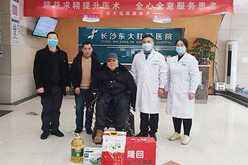 梅先生家住长沙雨花区,是一名肢体一级残疾人,多年前因车祸导致高位截瘫,只能依靠轮椅和护工生活,生活非常困难。得知梅先生的情况后,我院组织志愿者服务队到其家中走访慰问,让他感受到来自社会大家庭的温暖和关爱。为了感谢医院给予他的帮助和关怀,梅先生特意定制了锦旗送到医院。