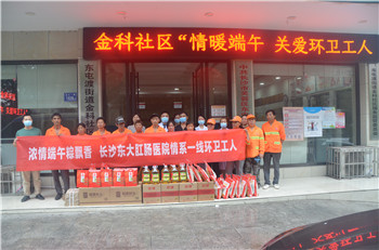 6月19日,在端午佳节来临之际,为了感谢环卫工人们在疫情期间仍然不畏艰险逆行而上,起早贪黑地忙碌在环卫工作第一线,长期以来为城市环境默默做出的奉献,长沙东大肛肠医院党支部及工会联合金科社区开展了端午慰问环卫工人活动,为他们送上浓浓的端午节祝福