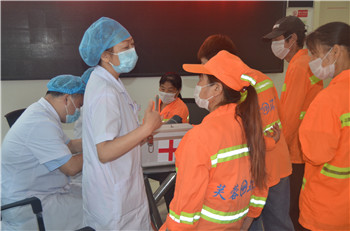 随后,吴从安医生和韩林护士开始为环卫工人们进行爱心体检。