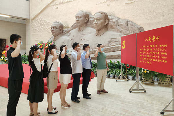 “我志愿加入中国共产党,拥护党的纲领,遵守党的章程……”随后,在党支部书记的带领下,全体成员在“潇湘魂”主题雕塑前重温了入党誓词,也更加坚定了共产党人的初心使命。