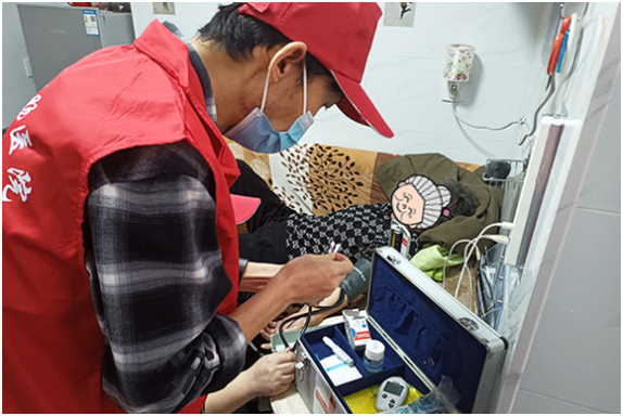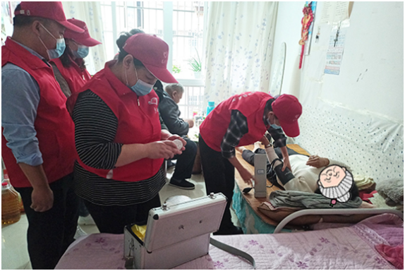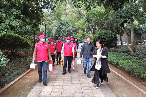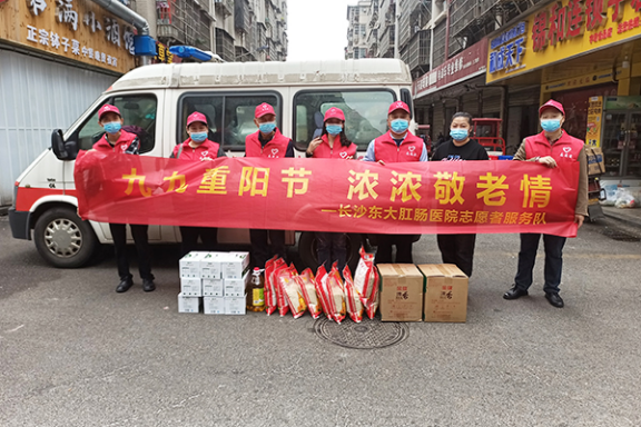 长沙东大肛肠医院志愿者服务队由院长周鹏带队,与社区工作人员一同走访独居及生活相对困难的老人。