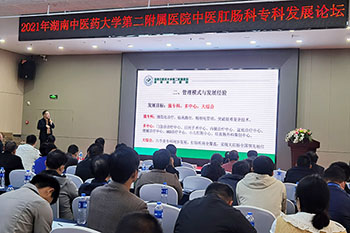 当天下午,中医肛肠科专科发展论坛在长沙三和酒店分会场召开。专家学者齐聚一堂,分享与探讨中医肛肠专科管理模式创新、特色前沿技术等。