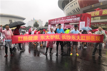 2019年10月27日,2019长沙国际马拉松在贺龙体育中心鸣枪,来自15个国家和地区的2.4万名选手秋雨中驰骋在长沙的“山水洲城”之间。值此盛会,长沙东大肛肠医院积极参与,组成马拉松小队,为倡导健康生活,为肛肠健康助力。