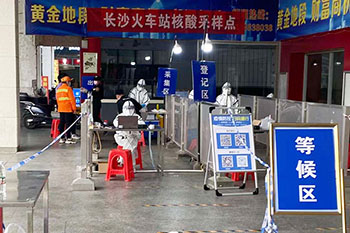 10月23日和25日,长沙东大肛肠医院医护志愿者被安排到长沙火车站核酸采集点为出站旅客进行核酸采样,严格把好城市“入口关”。